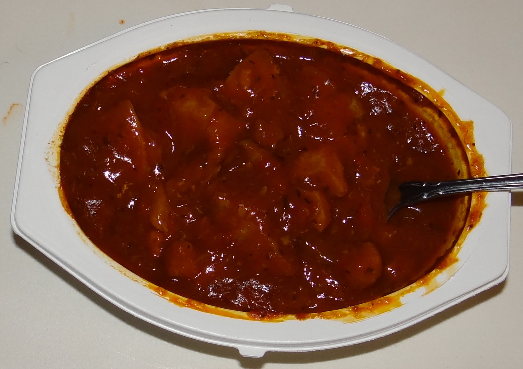 So how is this Hormel Meal? First bite and the taste was very good. The sauce was described by my fiancee as resembling the taste of the sauce in a can of "Beef-a-Roni and was just right, I thought it could use a bit more spice to it but that it probably the Italian in me. The sauce had a good consistency. The chunks of chicken were all white meat, were the perfect size and had a very good taste.
