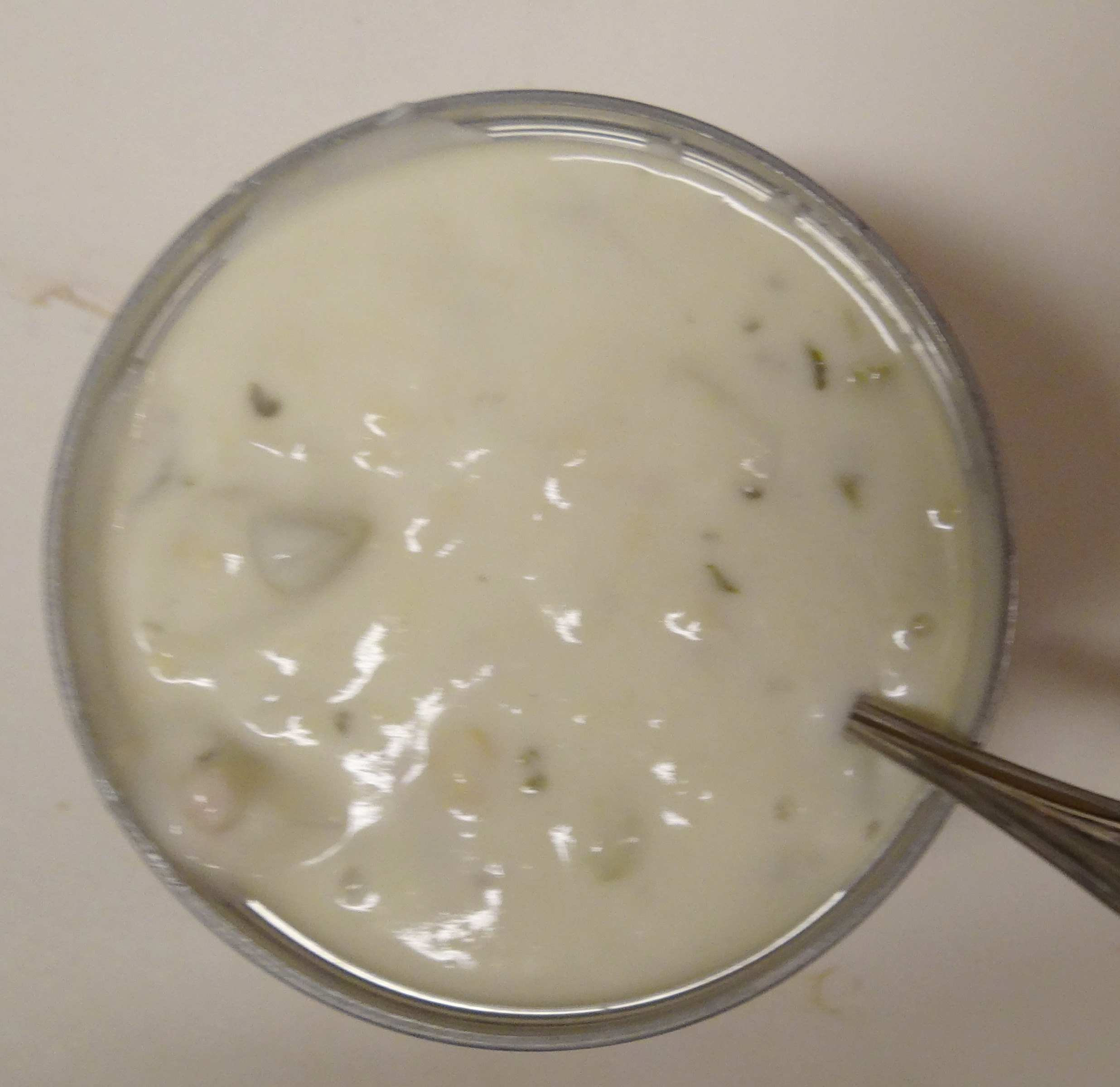 The "sauce" has a hearty clam taste and is the perfect thickness for a stick to your ribs soup. There are nice sized pieces of clam and potatoes both in this soup. And the potatoes? The are cooked just right.