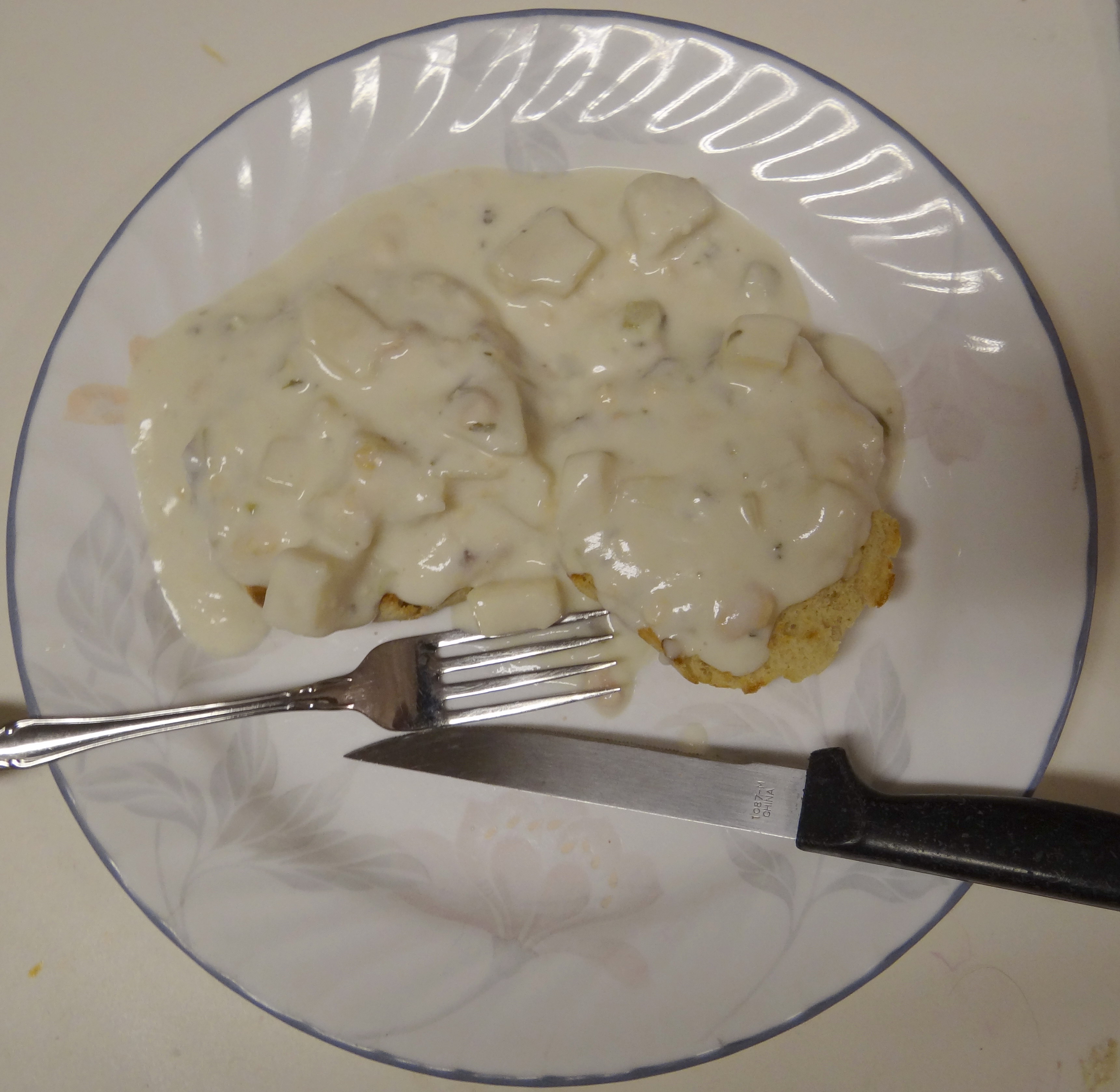 This would also be good over a toasted English muffin or actually there is more than enough soup in the can to cover two English Muffins (4 halves). Toasted bread or regular bread tore up into pieces then covered with the soup also works well.